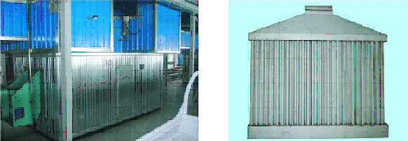 装置室体采用保温壁板结构,内侧板镀锌钢板或不锈钢板;外侧板镀锌波纹板(或彩钢压形板),中间为保温层,装置一侧面有检修门;